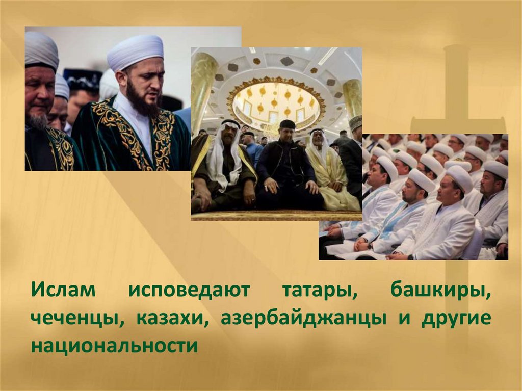 Ислам исповедают татары, башкиры,чеченцы, казахи, азербайджанцы и другие