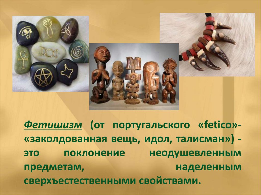 Фетишизм (от португальского «fetico»«заколдованная вещь, идол, талисман») этопоклонение
