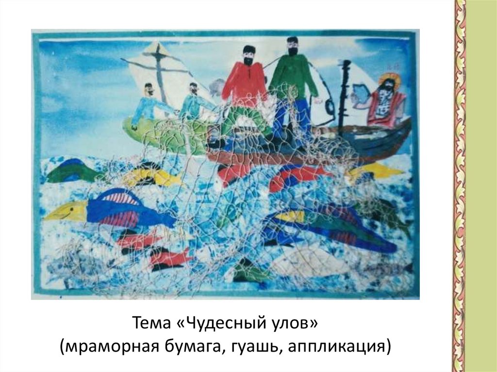 Тема «Чудесный улов»(мраморная бумага, гуашь, аппликация)