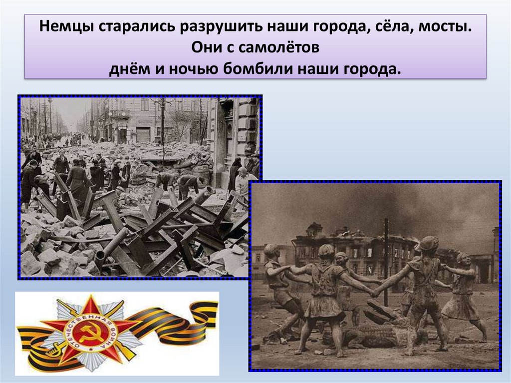 Немцы старались разрушить наши города, сёла, мосты.Они с самолётов
