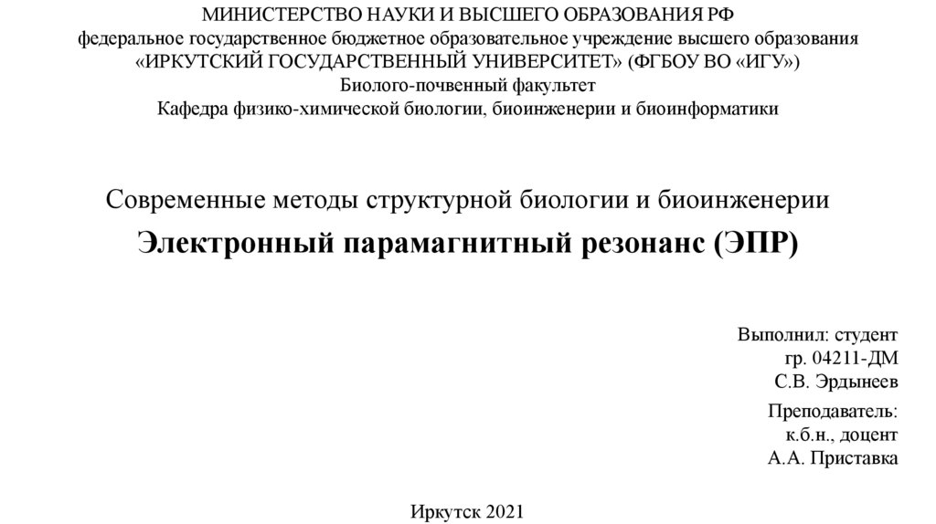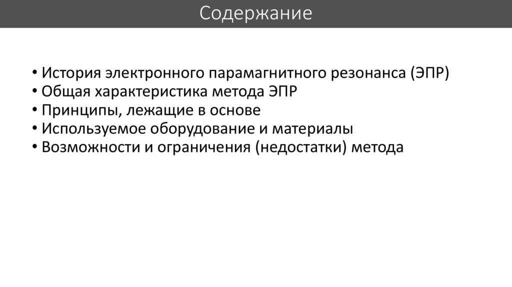 Содержание• История электронного парамагнитного резонанса (ЭПР)