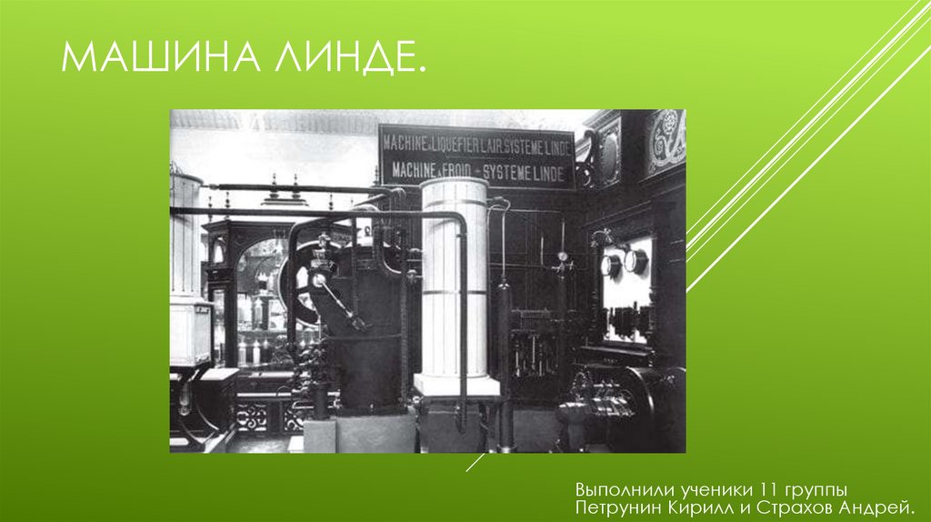 МАШИНА ЛИНДЕ.Выполнили ученики 11 группы