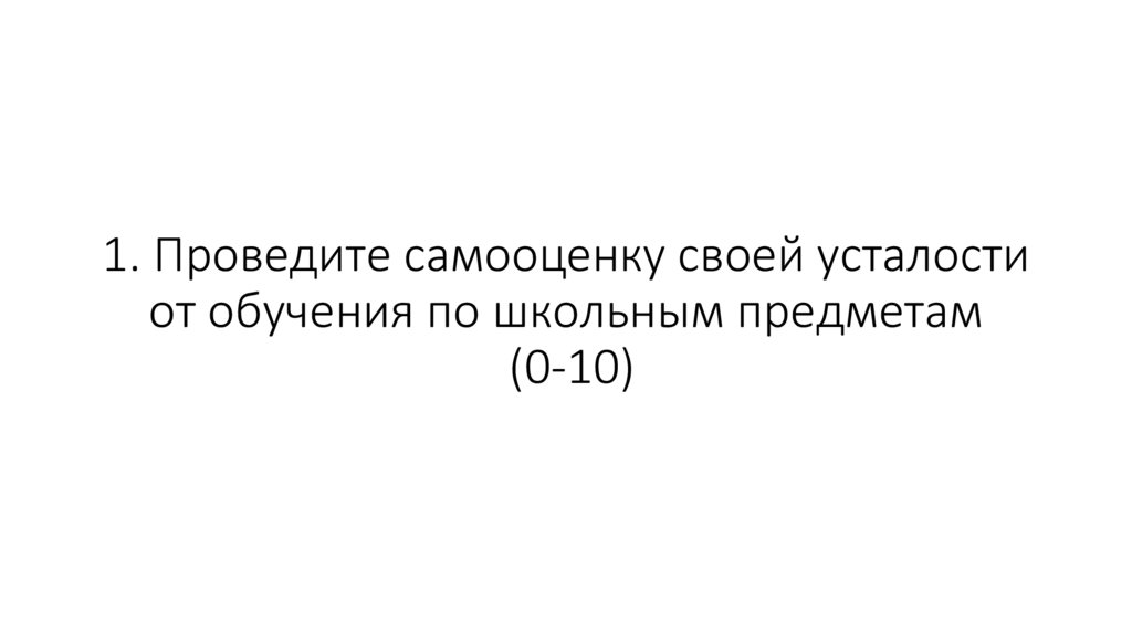 1. Проведите самооценку своей усталостиот обучения по школьным предметам