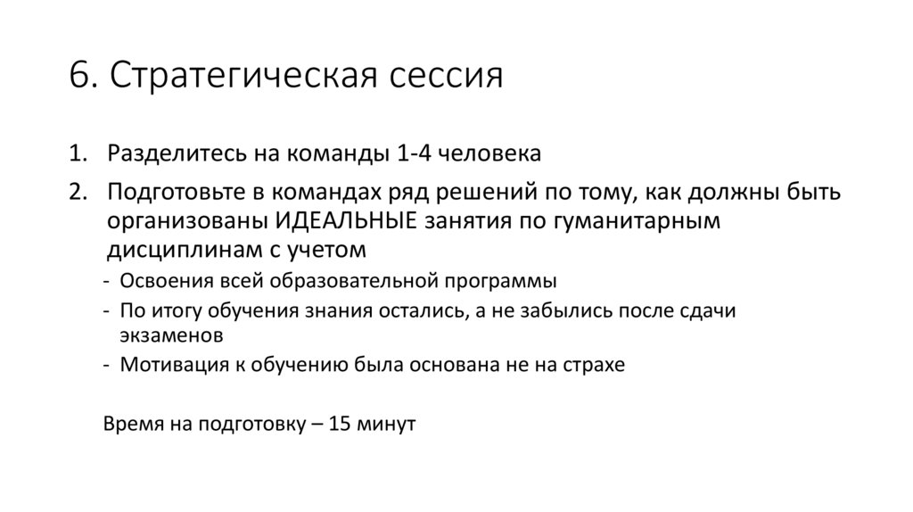 6. Стратегическая сессия1. Разделитесь на команды 1-4 человека