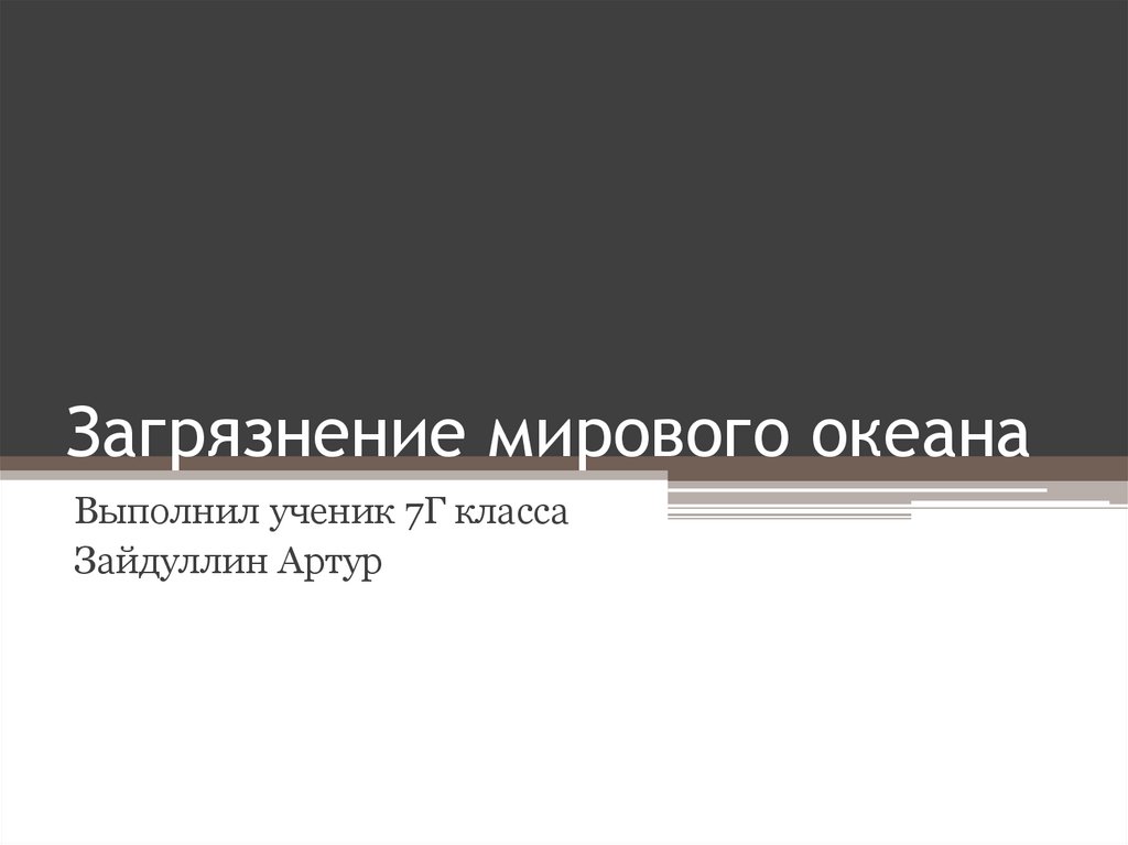 Загрязнение мирового океанаВыполнил ученик 7Г класса