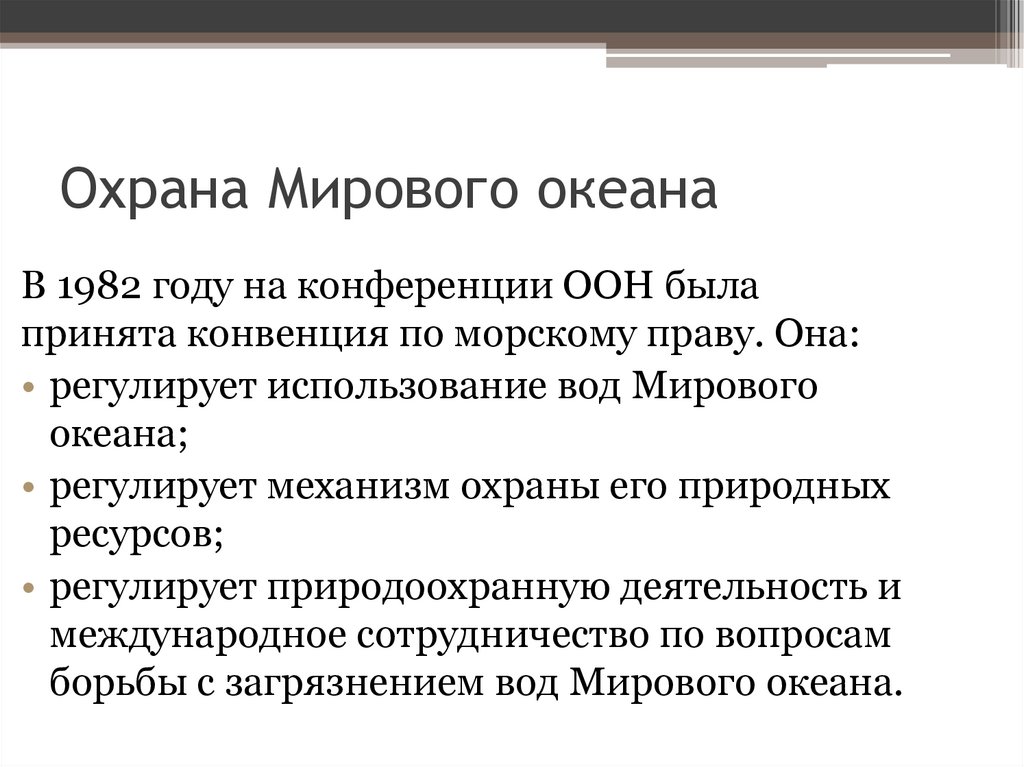 Охрана Мирового океанаВ 1982 году на конференции ООН была