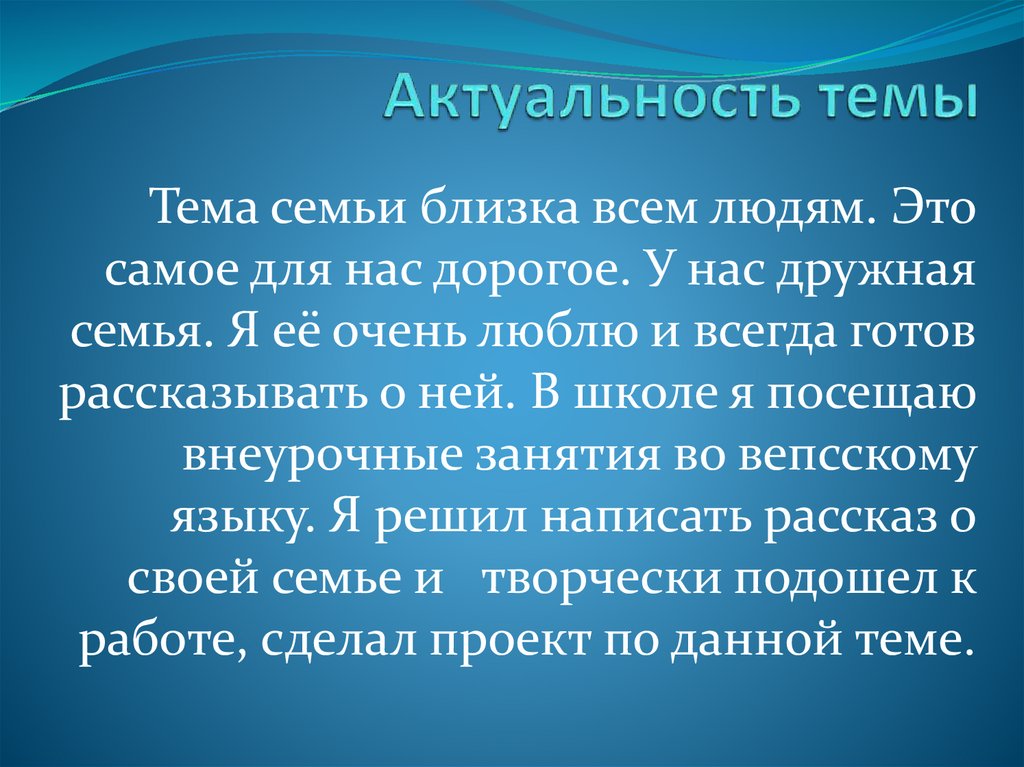 Тема семьи близка всем людям. Этосамое для нас дорогое. У нас дружная