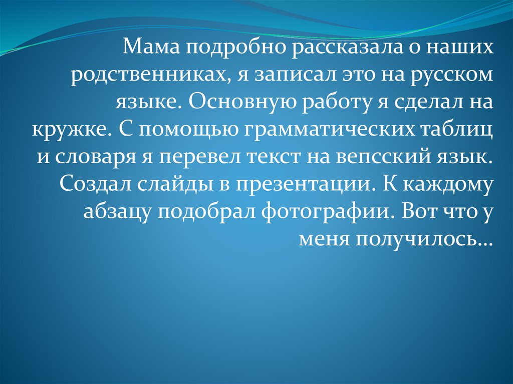 Мама подробно рассказала о нашихродственниках, я записал это на русском