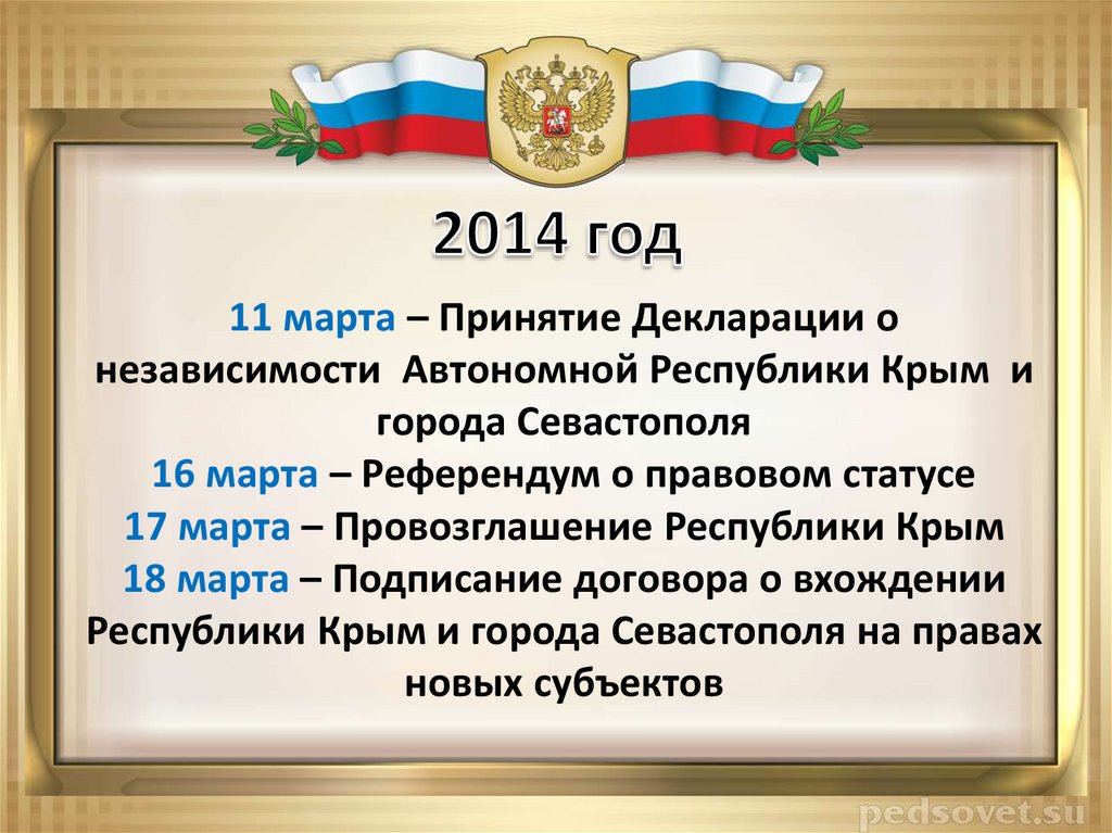 18 марта – Подписание договора о вхождении