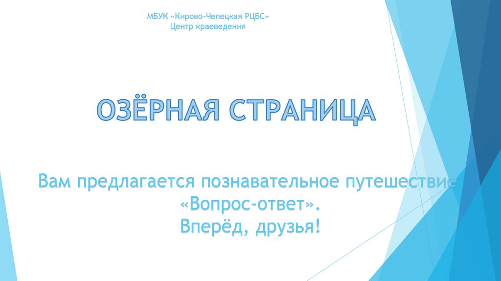 Познавательное путешествие «Вопрос-ответ». Страница озерная краеведческого квеста