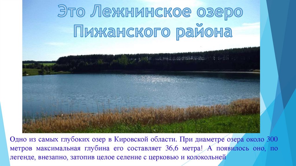Одно из самых глубоких озер в Кировской области. При диаметре озера около 300метров максимальная глубина его составляет 36,6 метра! А появилось оно, по