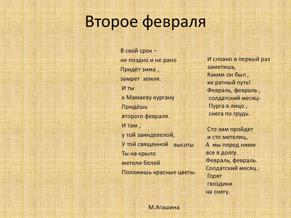 Второе февраляВ свой срок –