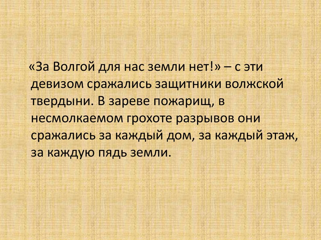 «За Волгой для нас земли нет!» – с этидевизом сражались защитники волжской