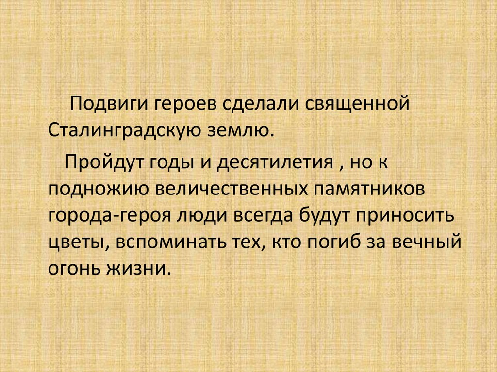 Подвиги героев сделали священнойСталинградскую землю.
