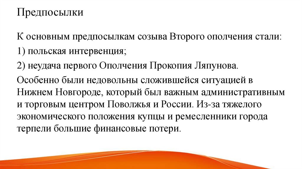 ПредпосылкиК основным предпосылкам созыва Второго ополчения стали: