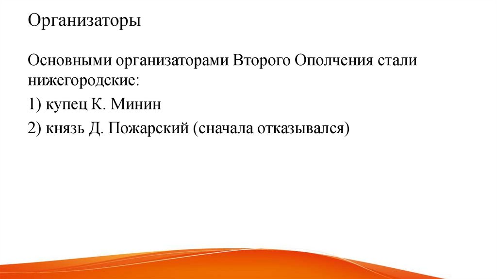 ОрганизаторыОсновными организаторами Второго Ополчения стали