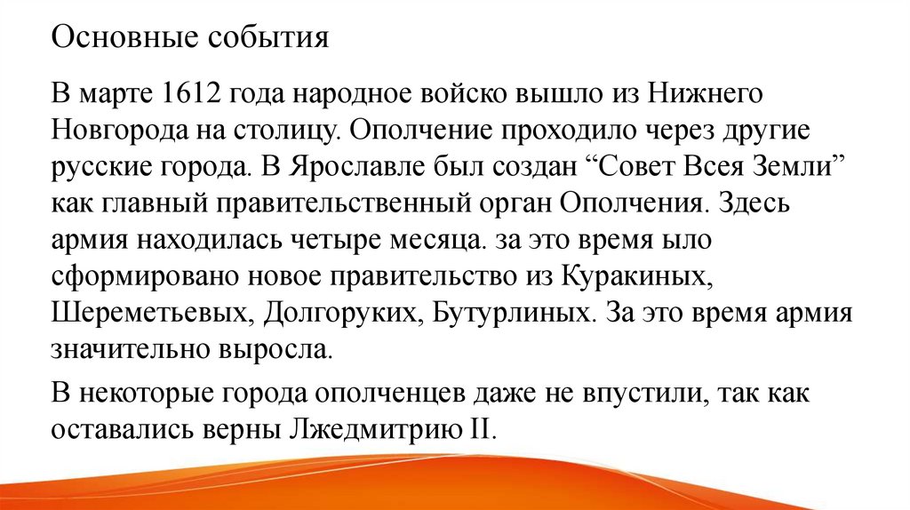 Основные событияВ марте 1612 года народное войско вышло из Нижнего