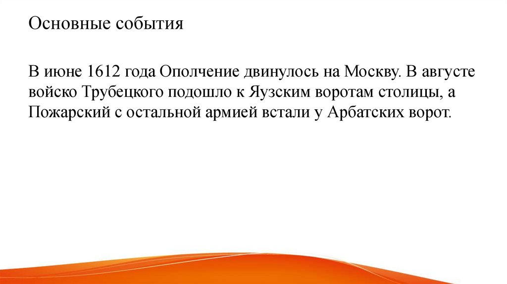 Основные событияВ июне 1612 года Ополчение двинулось на Москву. В августе