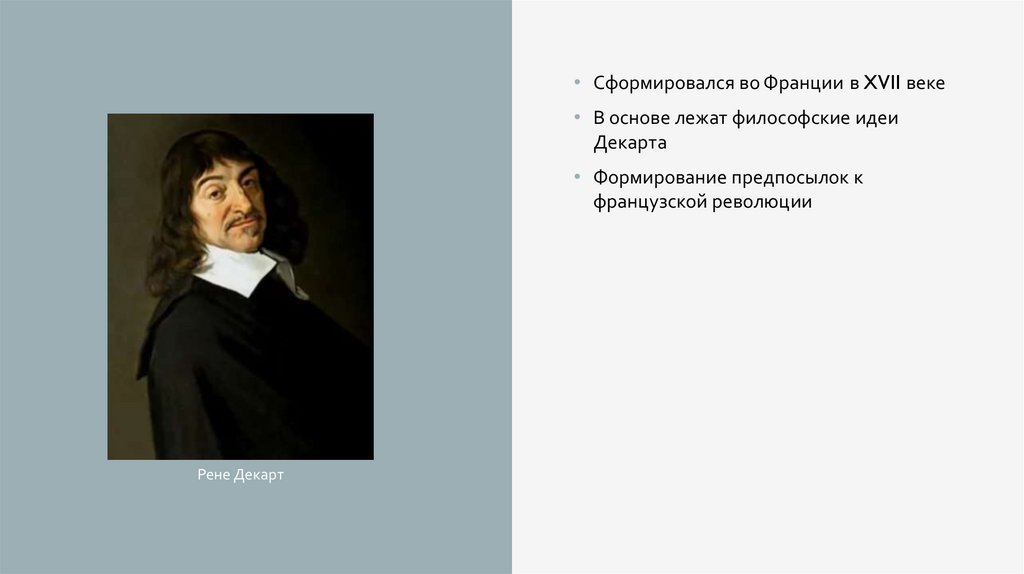 • Сформировался во Франции в XVII веке• В основе лежат философские идеи