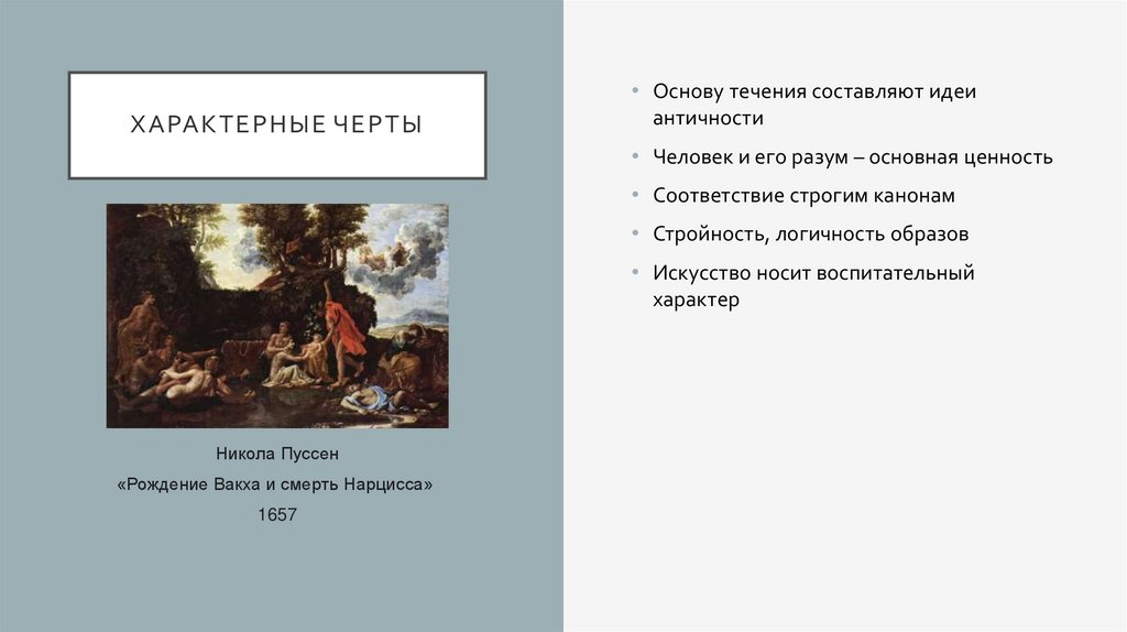 ХАРАКТЕРНЫЕ ЧЕРТЫ• Основу течения составляют идеи