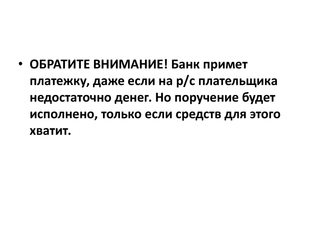 • ОБРАТИТЕ ВНИМАНИЕ! Банк приметплатежку, даже если на р/с плательщика