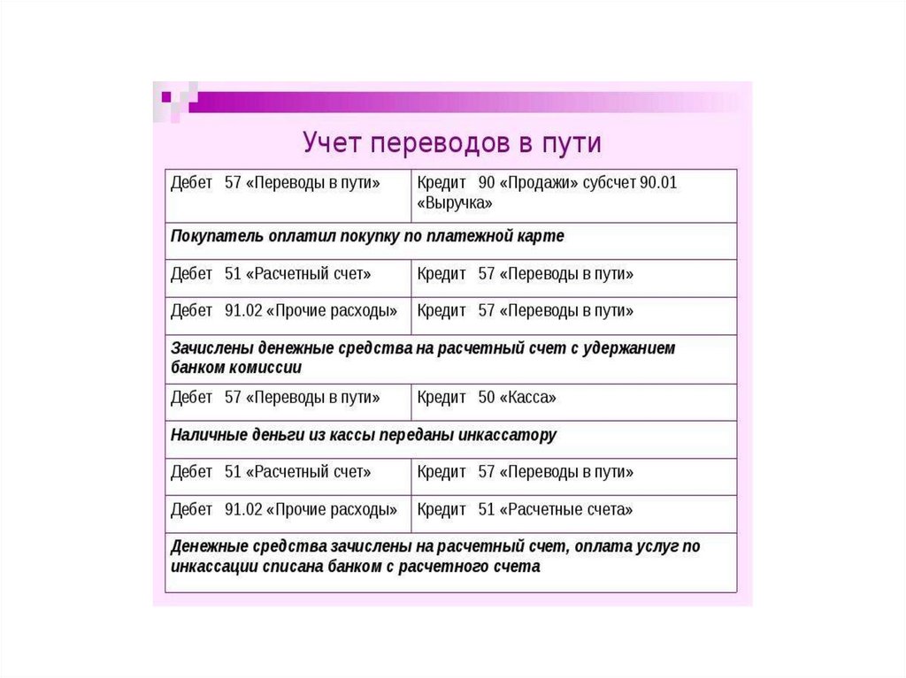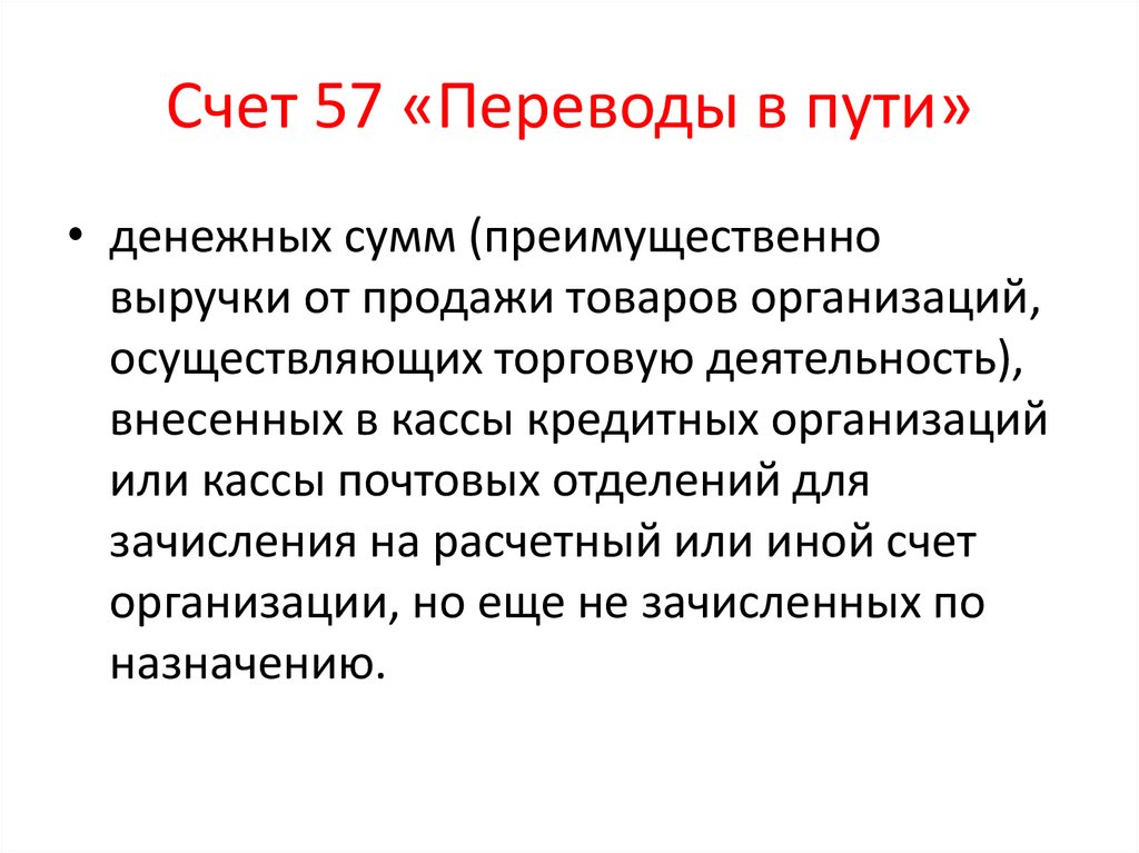 Счет 57 «Переводы в пути»• денежных сумм (преимущественно