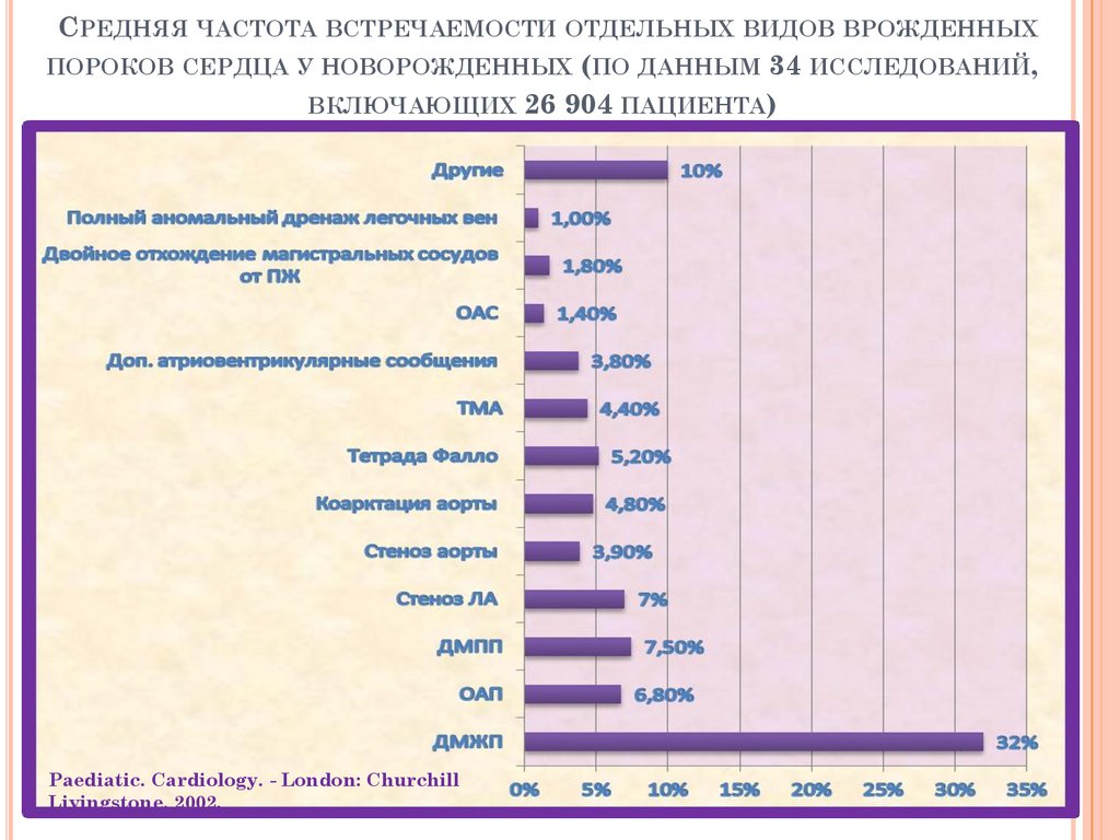 СРЕДНЯЯ ЧАСТОТА ВСТРЕЧАЕМОСТИ ОТДЕЛЬНЫХ ВИДОВ ВРОЖДЕННЫХПОРОКОВ СЕРДЦА У НОВОРОЖДЕННЫХ (ПО ДАННЫМ 34 ИССЛЕДОВАНИЙ,