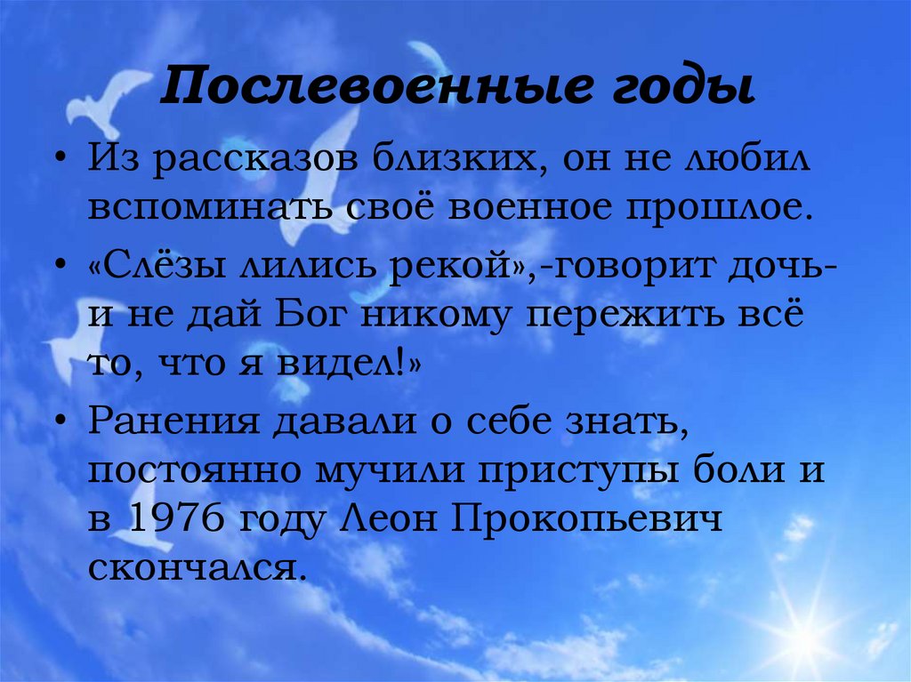 что вспоминает дочь фронтовика Любовь Леонтьевна :