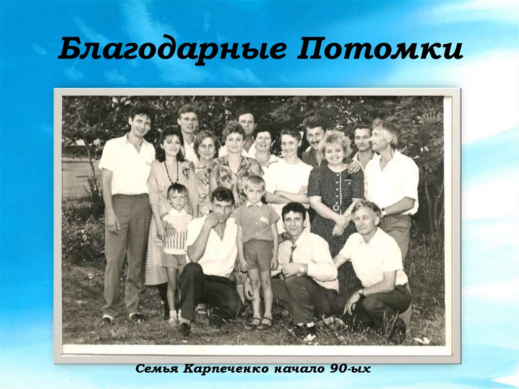 Благодарные ПотомкиСемья Карпеченко начало 90-ых
