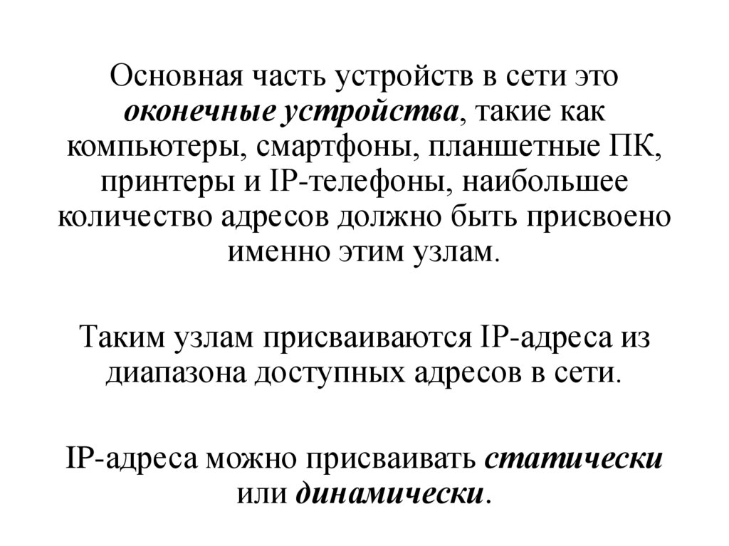 В IPv4-сети индивидуальные адреса,применяемые к оконечному устройству,