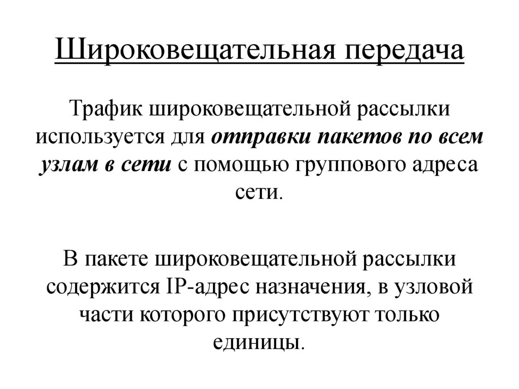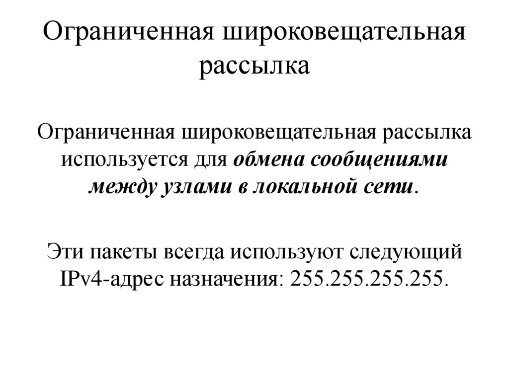 Одноадресная, широковещательная и многоадресная рассылка IPv4
