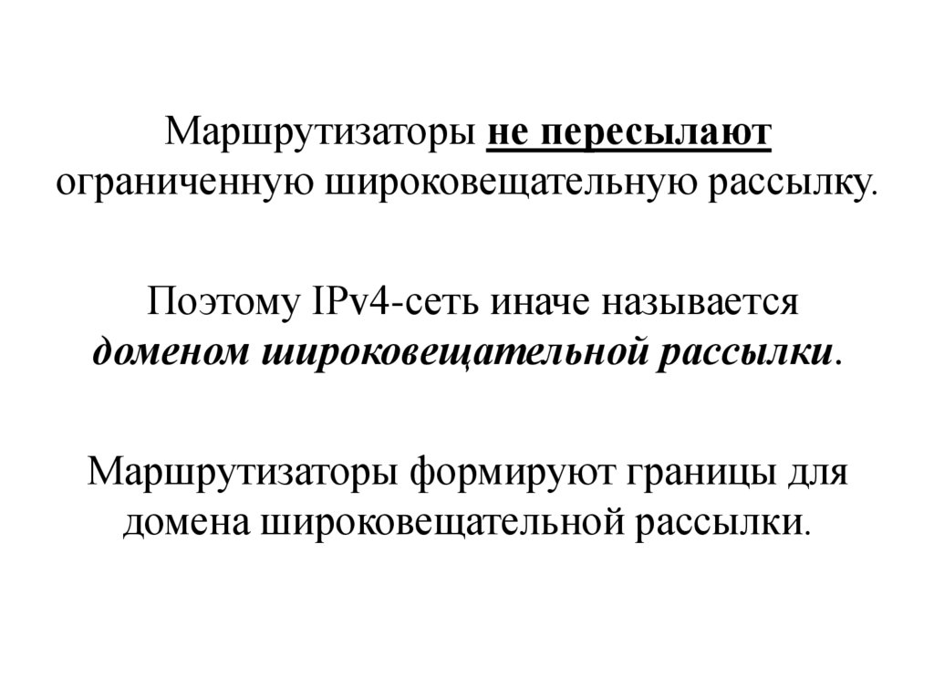 Маршрутизаторы не пересылаютограниченную широковещательную рассылку.
