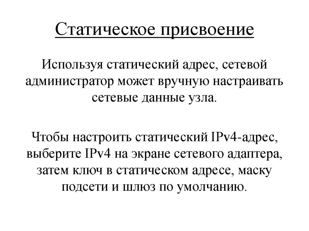 Статическое присвоениеИспользуя статический адрес, сетевой