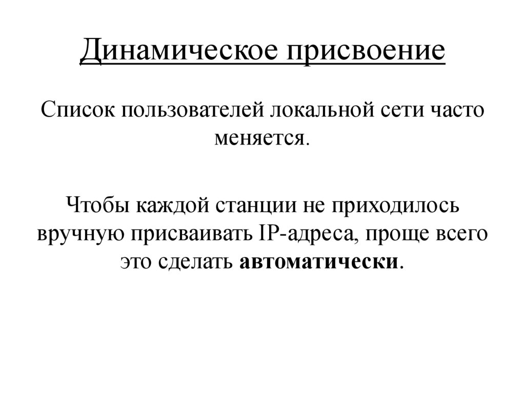 Динамическое присвоениеСписок пользователей локальной сети часто