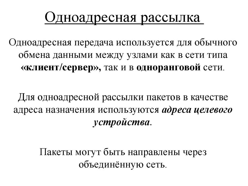 Одноадресная рассылкаОдноадресная передача используется для обычного