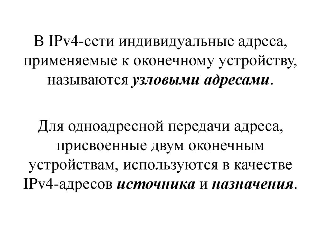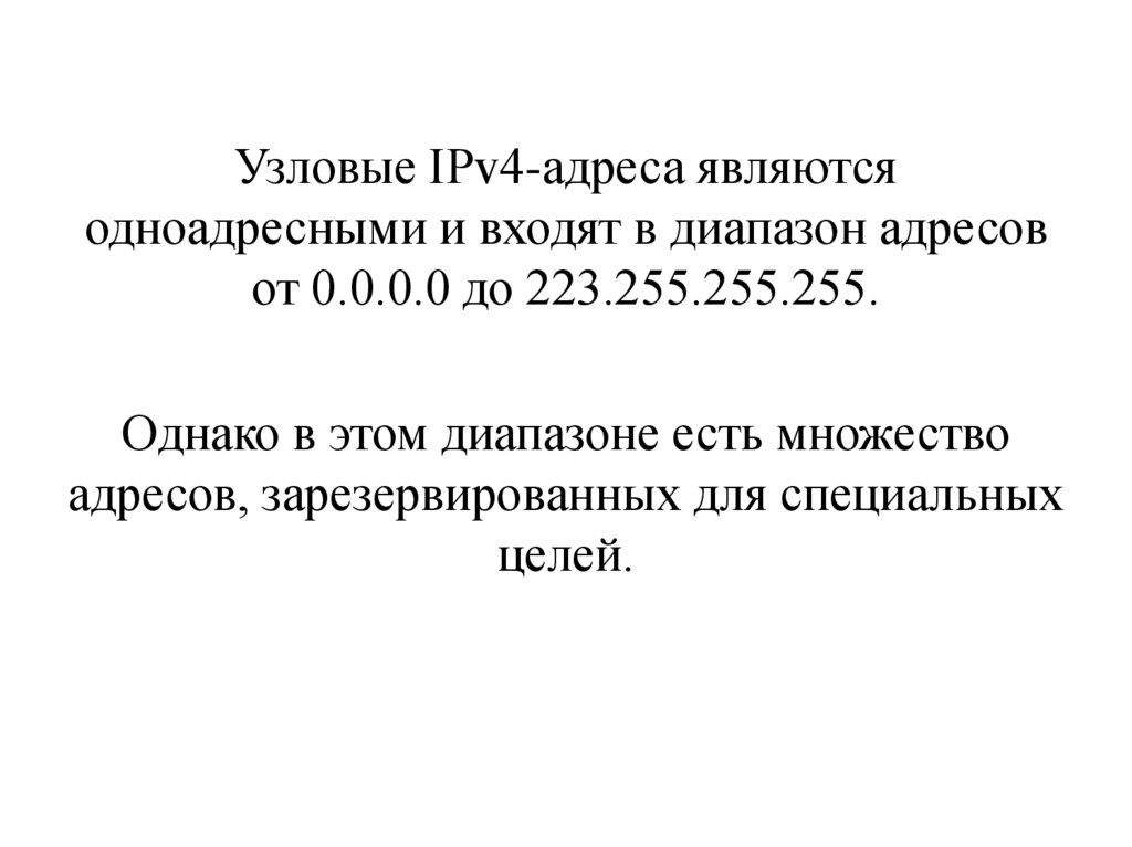 Узловые IPv4-адреса являютсяодноадресными и входят в диапазон адресов