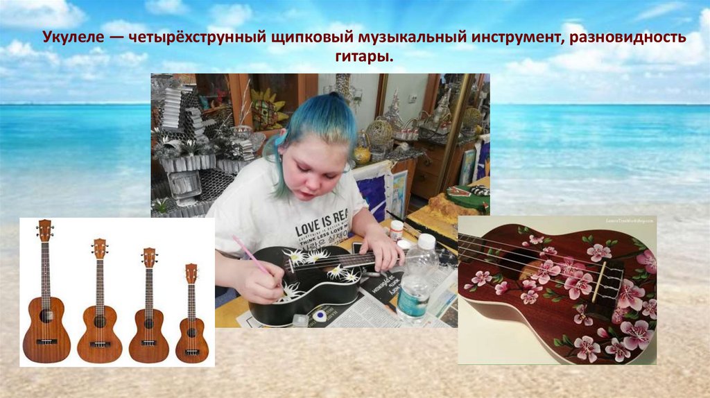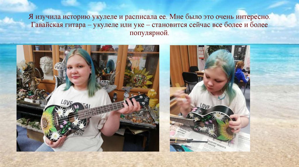 Я изучила историю укулеле и расписала ее. Мне было это очень интересно.Гавайская гитара – укулеле или уке – становится сейчас все более и более