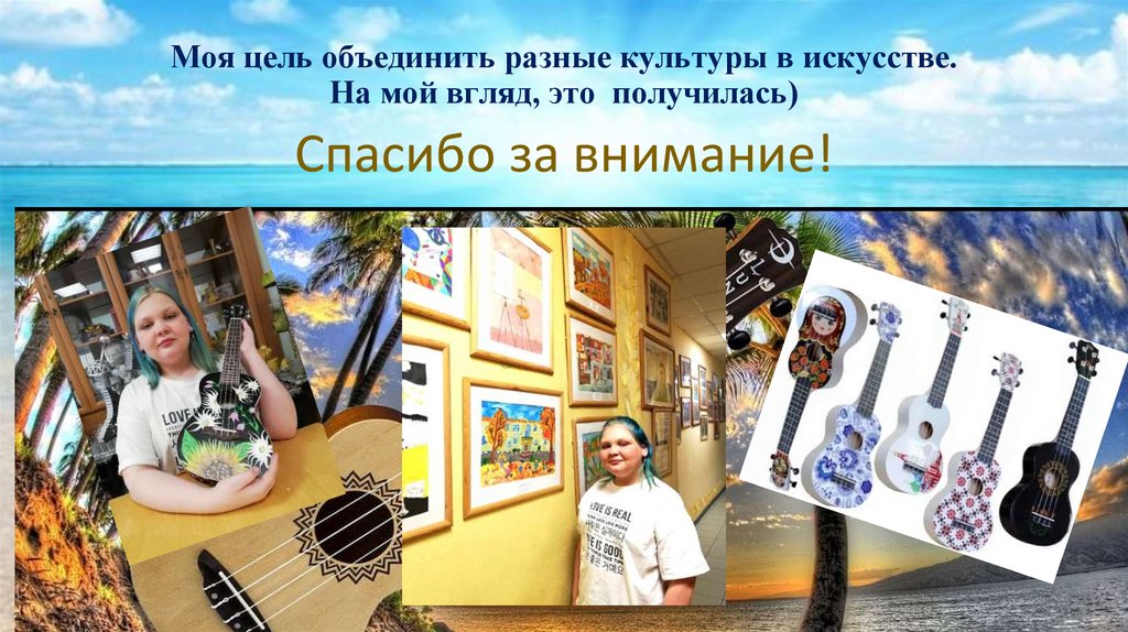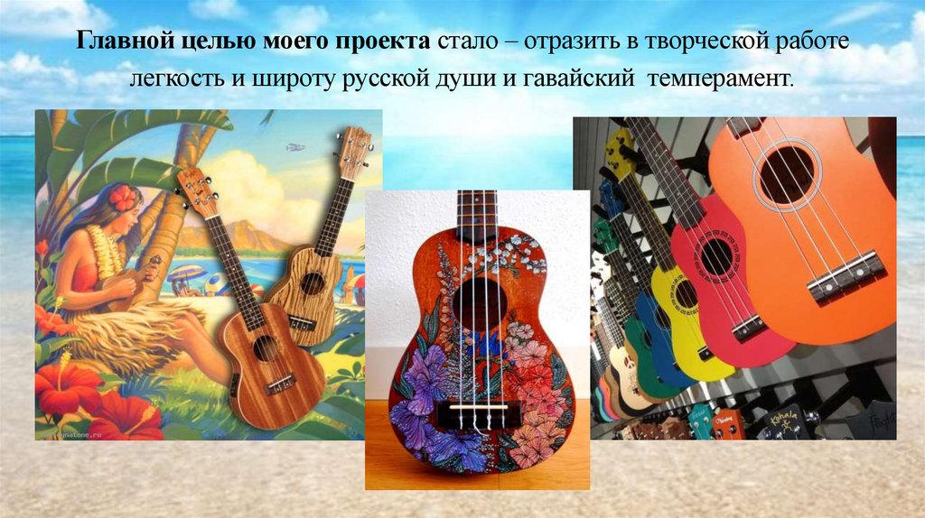 Главной целью моего проекта стало – отразить в творческой работелегкость и широту русской души и гавайский темперамент.