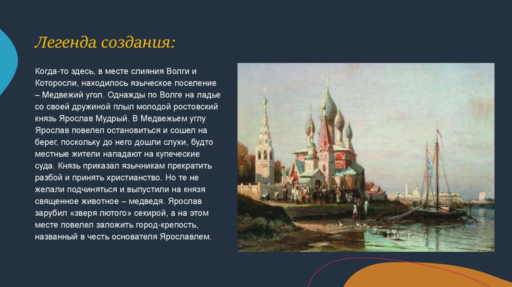 Легенда создания:Когда-то здесь, в месте слияния Волги и
