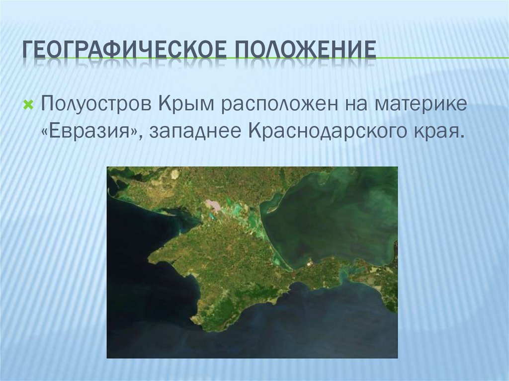 ГЕОГРАФИЧЕСКОЕ ПОЛОЖЕНИЕПолуостров Крым расположен на материке