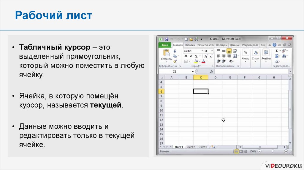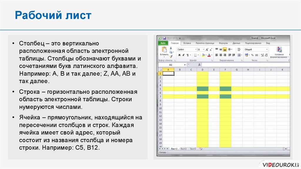 Ячейка образуется на пересечении столбца и строки. Содержимым ячейки может быть текст,