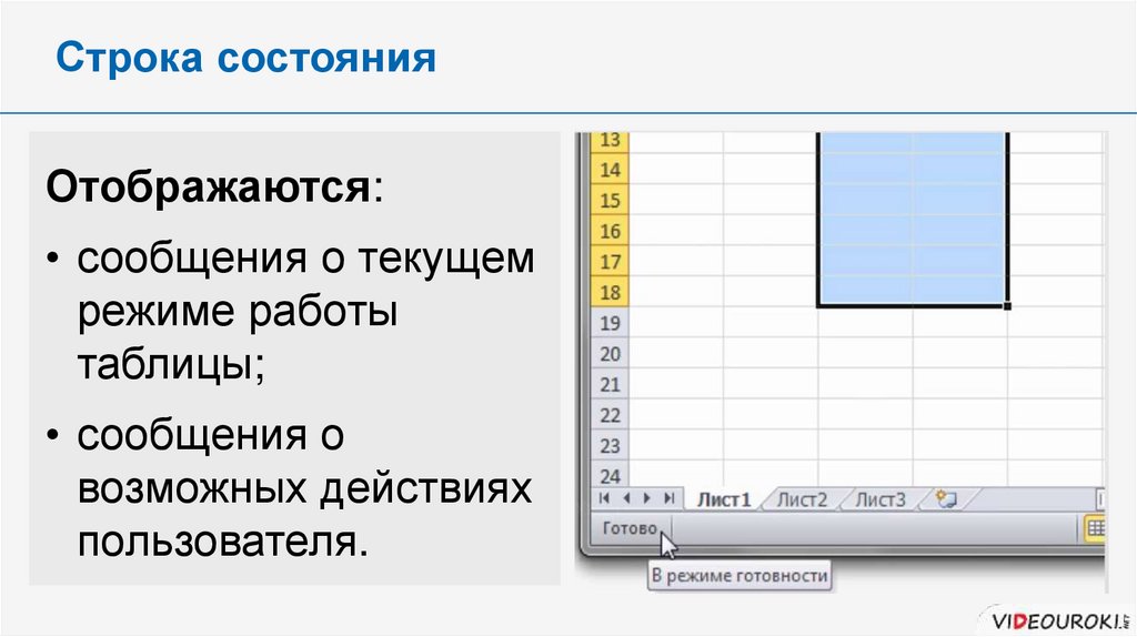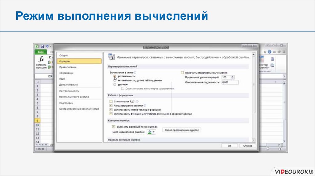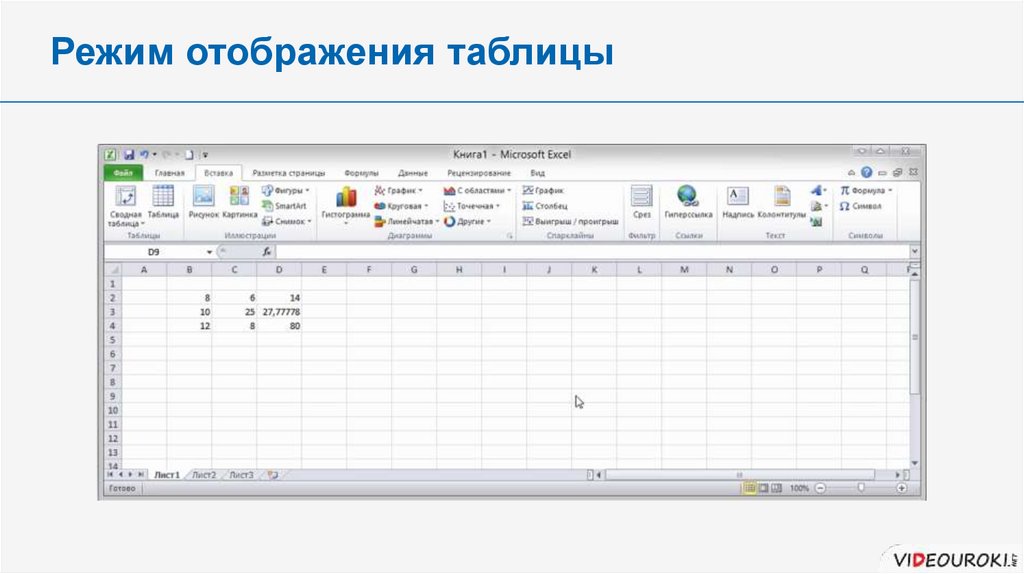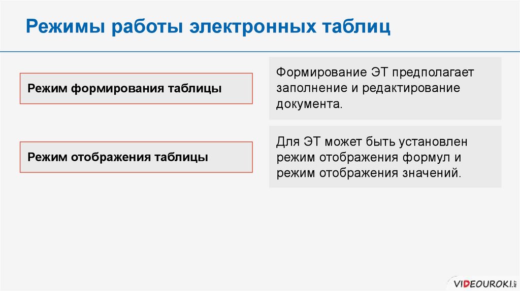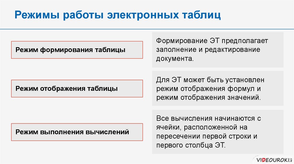 таблицы, режим отображения таблицы и режим выполнения вычислений.