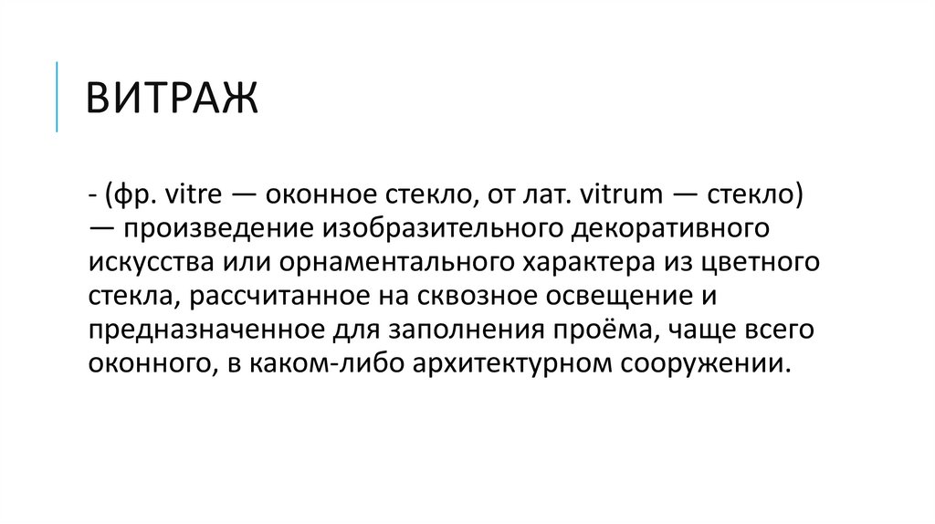 ВИТРАЖ- (фр. vitre — оконное стекло, от лат. vitrum — стекло)