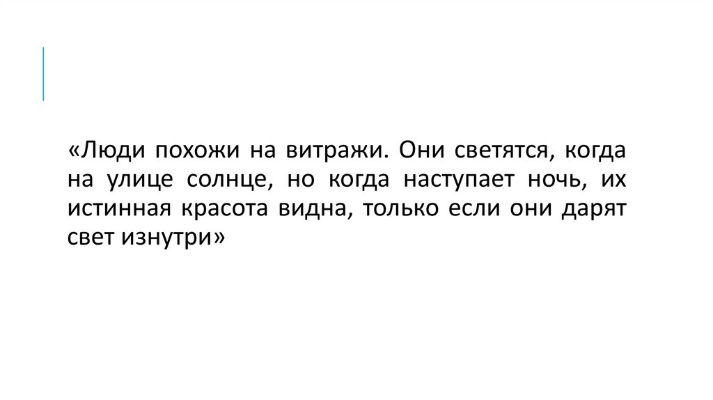 «Люди похожи на витражи. Они светятся, когдана улице солнце, но когда наступает ночь, их
