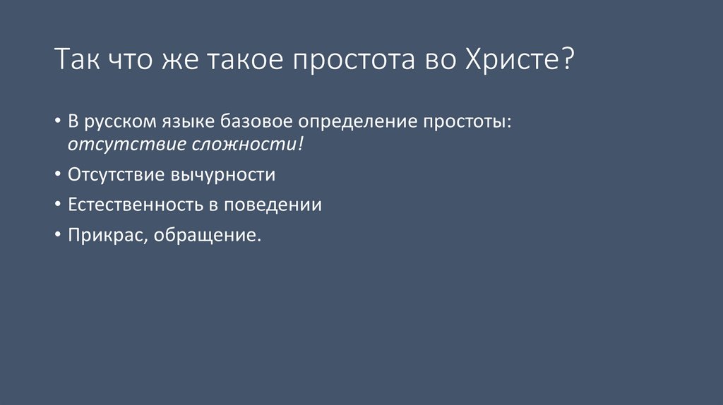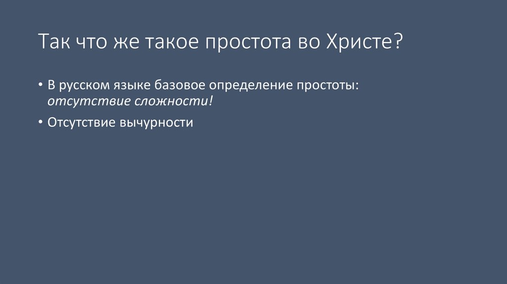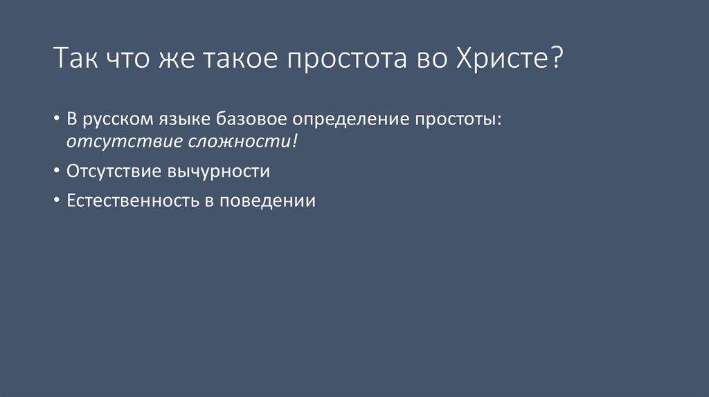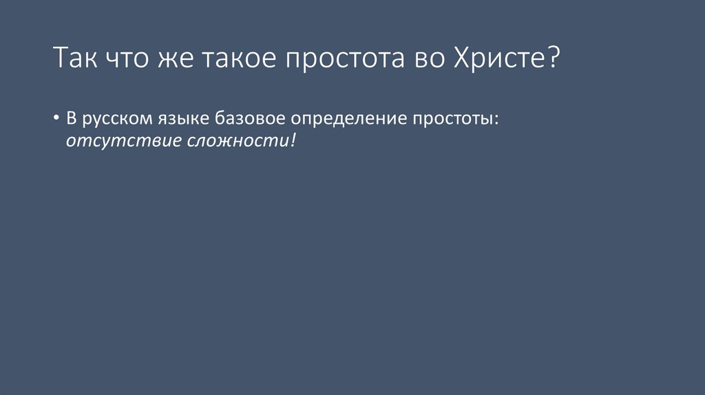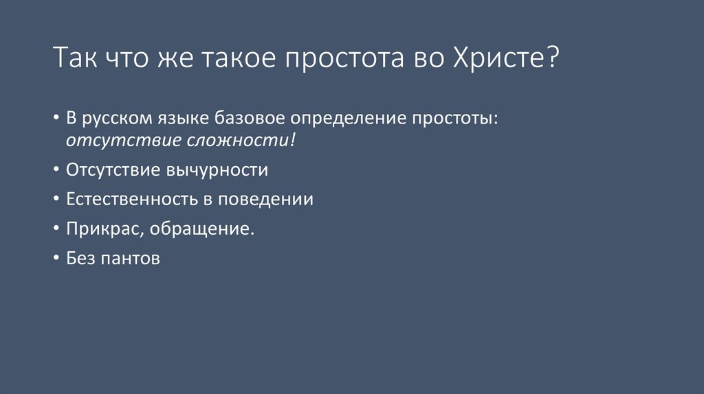 Так что же такое простота во Христе?• В русском языке базовое определение простоты: