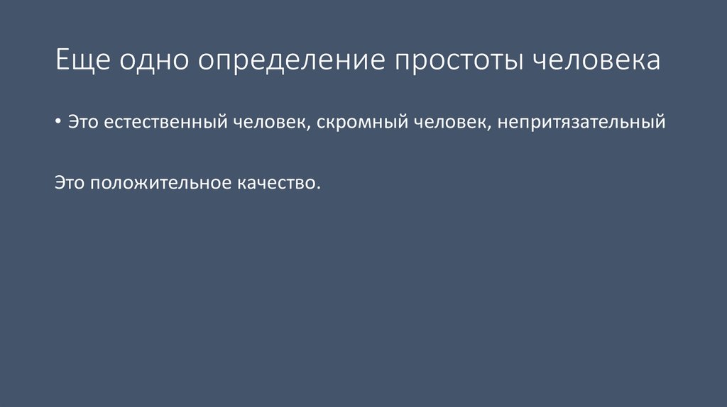 Еще одно определение простоты человека• Это естественный человек, скромный человек, непритязательный