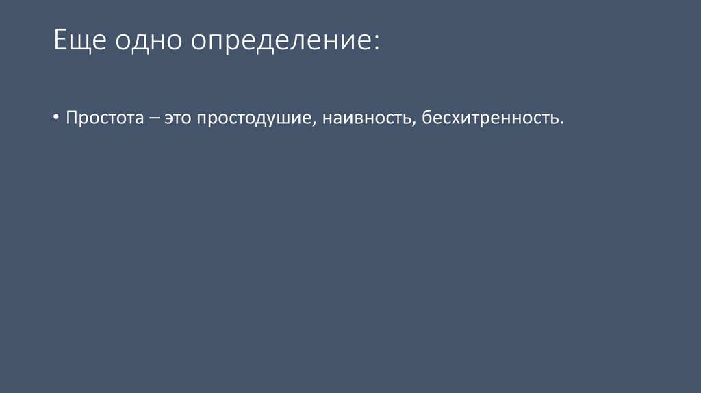 Еще одно определение:• Простота – это простодушие, наивность, бесхитренность.