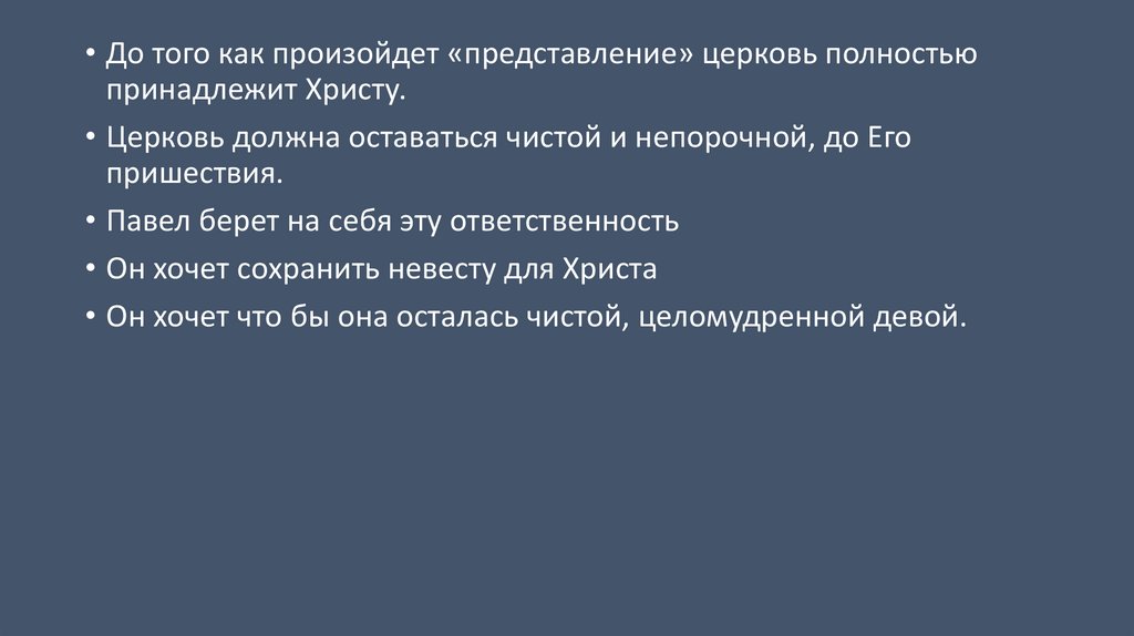• До того как произойдет «представление» церковь полностьюпринадлежит Христу.