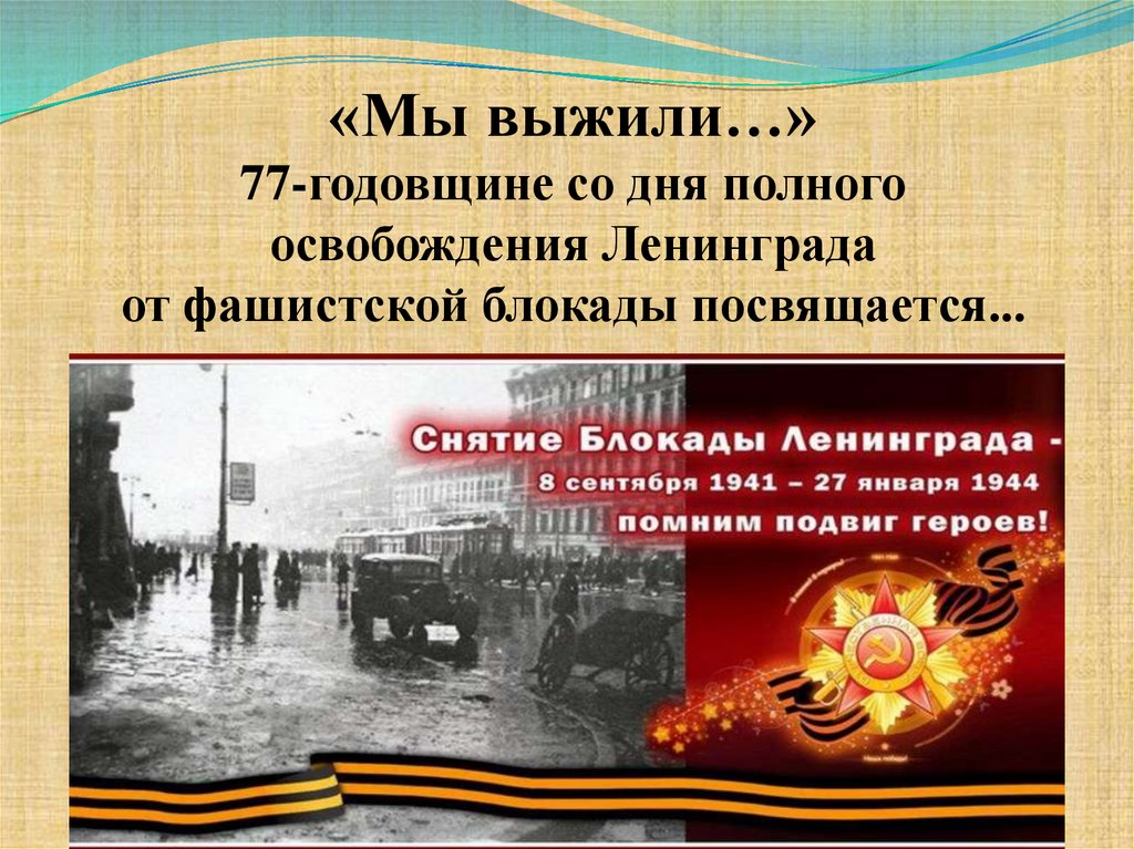 «Мы выжили…» 77-годовщине со дня полного освобождения Ленинграда от фашистской блокады посвящается