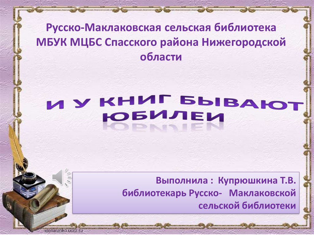 Русско-Маклаковская сельская библиотекаМБУК МЦБС Спасского района Нижегородской